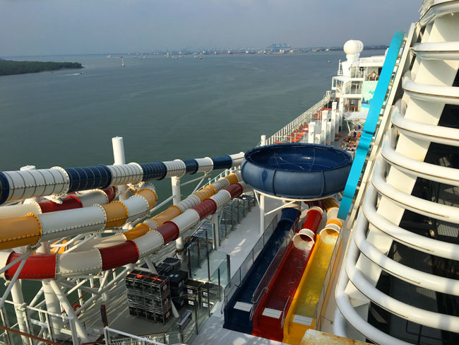 6台のウォータースライダー(1台は子供用)は、船内でも1番人気のアトラクションです。
