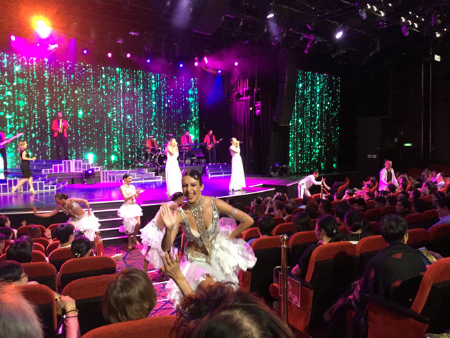 船内とは思えない本格的な劇場設備、シンガポールでも行われるような本格的なショーで、その質の高さに驚きました。