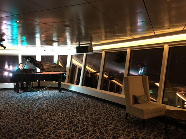 2日目の最後はバー「パームコート」(19階)でピアノの生演奏を聞きながら、カクテルをいただきました。